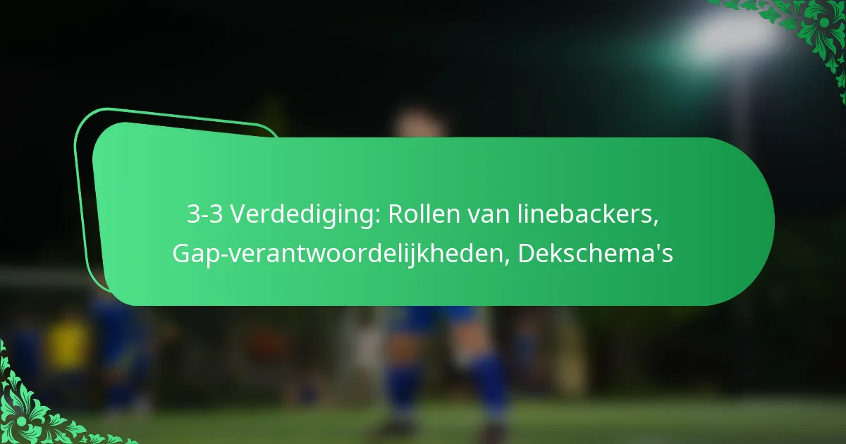 In de 3-3 defense spelen linebackers cruciale rollen in zowel runverdediging als passdekking, waarbij ze hun verantwoordelijkheden aanpassen op basis van de spelsituatie. Hun positionering, communicatie en specifieke taken zijn essentieel voor het behouden van defensieve integriteit en effectiviteit tegen verschillende aanvallende strategieën.