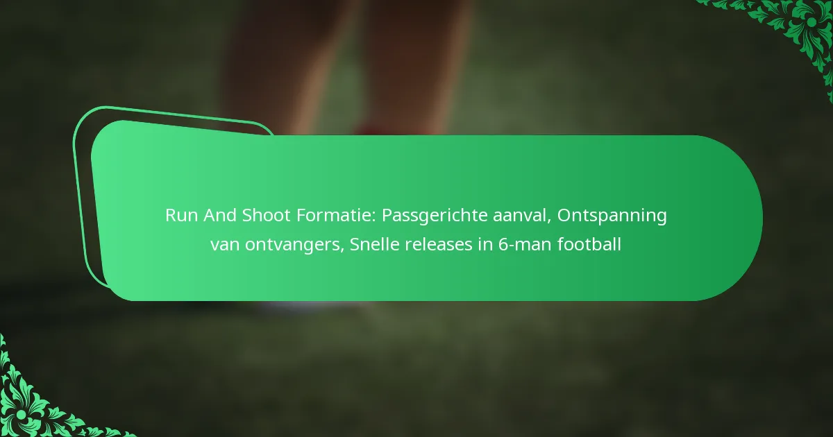 De Run and Shoot-formatie in 6-man football is een passgerichte offensieve strategie die de nadruk legt op snelle releases en effectieve receiver-spacing. Deze formatie stelt teams in staat om defensieve zwaktes te exploiteren door middel van strategisch passen en dynamische beweging op het veld.